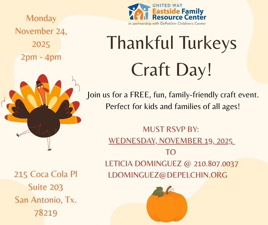 Join us at the United Way Eastside Family Resource Center to celebrate the season with free, fun, and festive crafts for the whole family! 🦃🍁